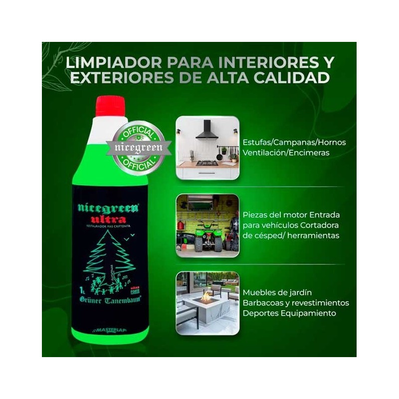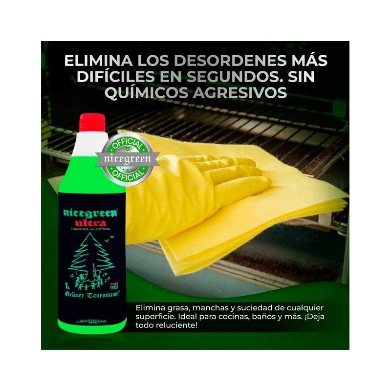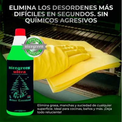 Resistencia Industrial: Fabricado con materiales duraderos y testados para soportar el uso diario intensivo con la fórmula concentrada de Nicegreen Ultra.