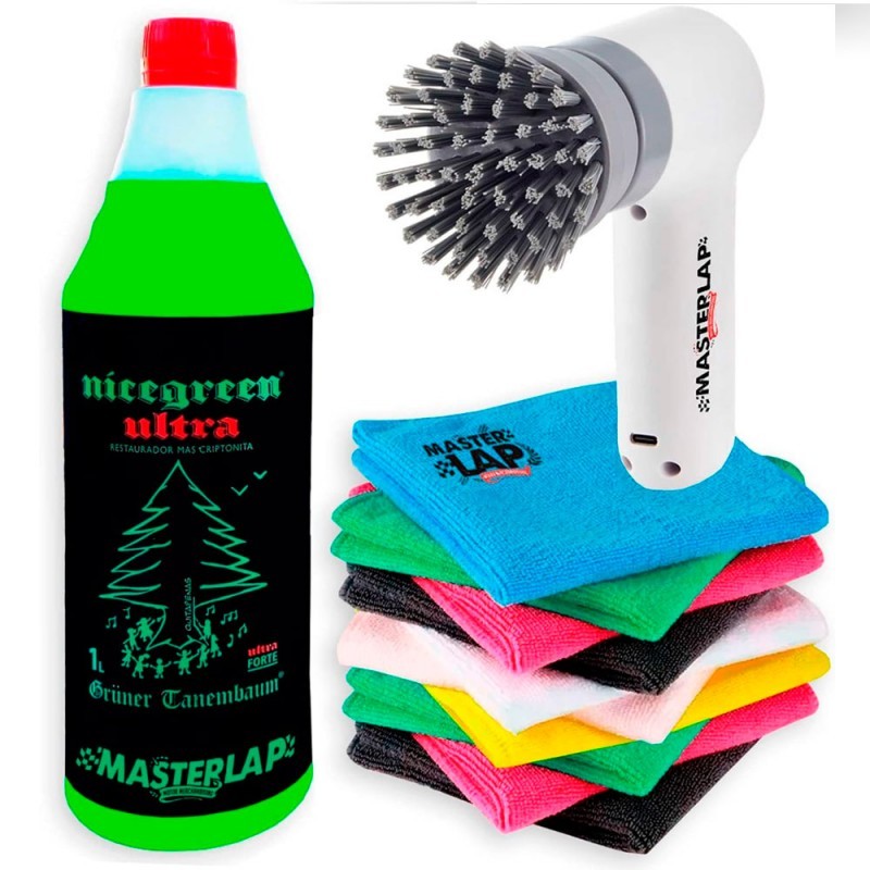 Di adiós al esfuerzo y hola al brillo. Este pack exclusivo de Nicegreen Ultra combina la potencia de nuestro limpiador con un cepillo eléctrico de limpieza profunda para eliminar la suciedad incrustada sin frotar. Con 10 bayetas de microfibra y un difusor de 1L, tendrás todo lo necesario para dejar tu hogar, coche o bicicleta como nuevos en tiempo récord.
