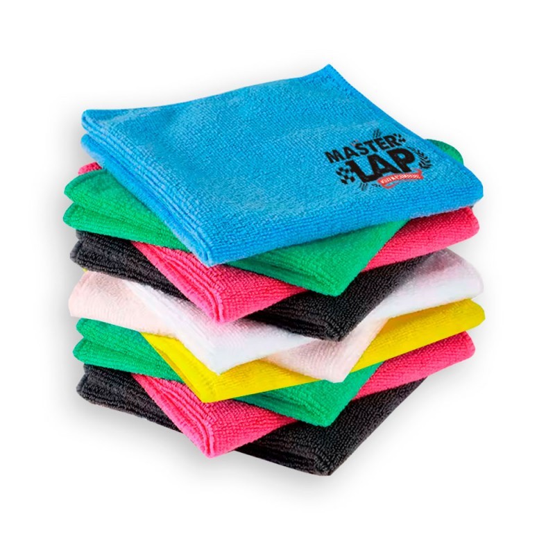 Lote de 10 Bayetas de Microfibra: Paños de alta densidad que atrapan el polvo y la suciedad sin rayar. Perfectas para secar y abrillantar después de la limpieza.